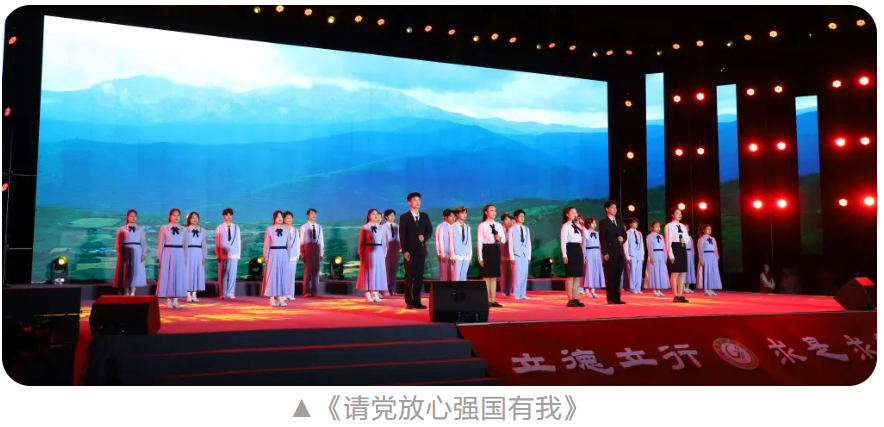 忆往昔峥嵘岁月,看今朝风华正茂。基础医学院带来的《请党放心强国有我》,将晚会推上了高潮。大家回顾党的百年奋斗历程,歌颂华夏大地的锦绣山河。时代的接力棒已经传递在手,我们定要不负韶华。