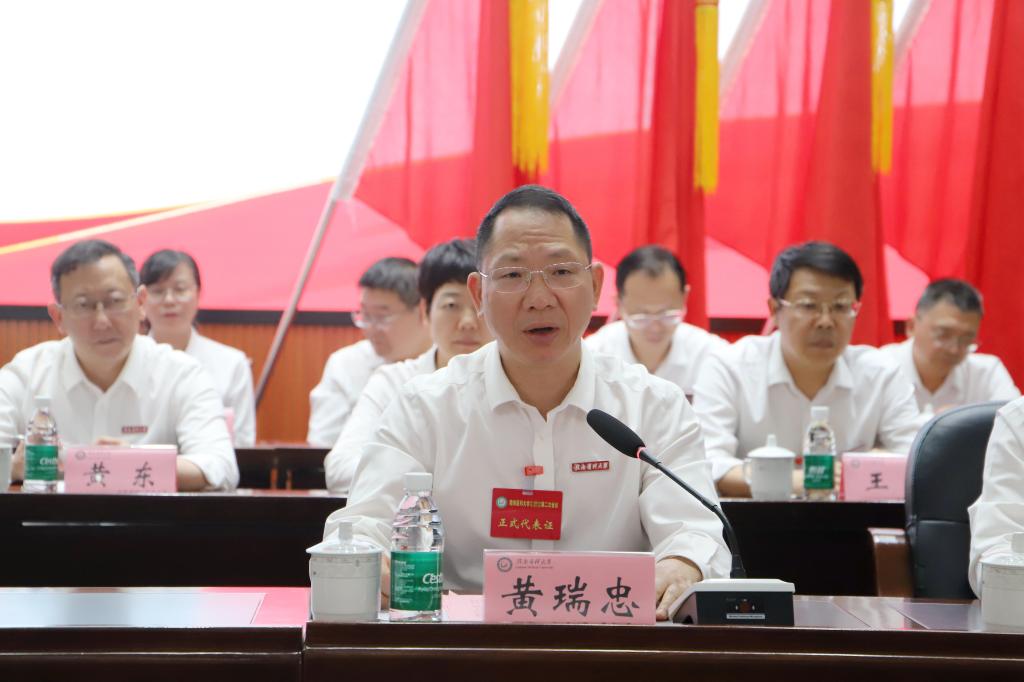黄瑞忠在主持时指出,本次大会是学校第一次党员代表大会后召开的一次十分重要的会议,对于我们深入实施学校高质量发展三年行动计划,推动学校实现高质量发展,具有非常重要的作用。让我们高举习近平新时代中国特色社会主义思想伟大旗帜,更加紧密地团结在以习近平同志为核心的党中央周围,深入学习贯彻党的二十大和二十届二中、三中全会精神,全面落实习近平总书记考察江西重要讲话精神,认真贯彻省委各项决策部署,紧紧围绕推动落实学校第一次党员代表大会和此次会议提出的各项目标任务,奋勇拼搏、扎实工作,为建设特色鲜明、区域一流、国内知名的高水平医科大学而努力奋斗。