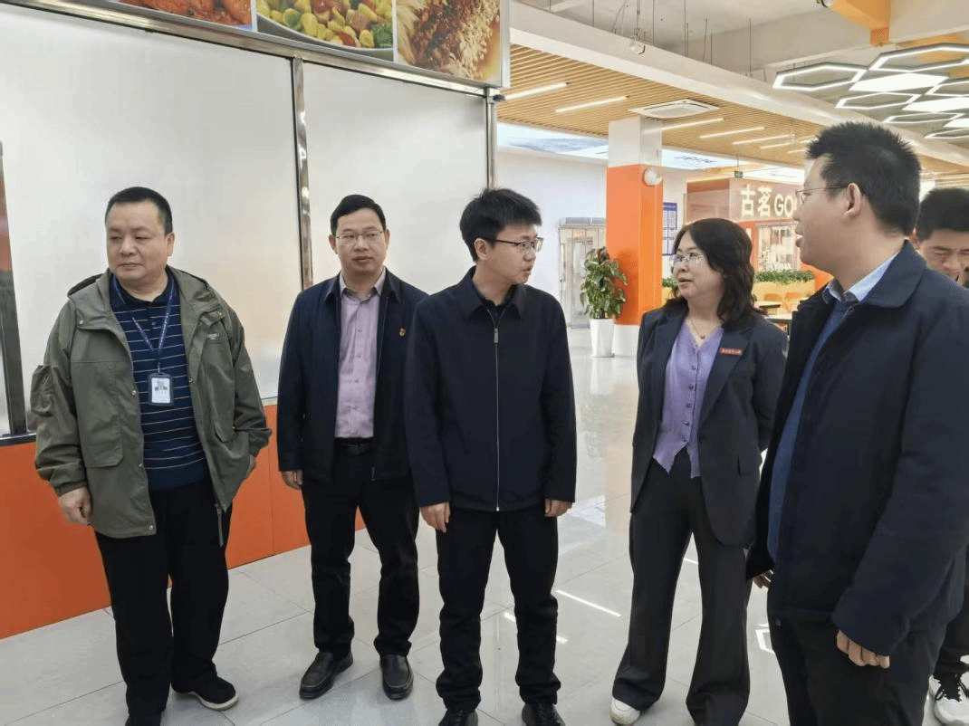 3月17日,赣州蓉江新区管委会副主任郑翮一行来校专题调研校园食品安全工作。赣州市市场监督管理局蓉江新区分局副局长曾庆武、后勤保障中心主任张爱萍等陪同。
