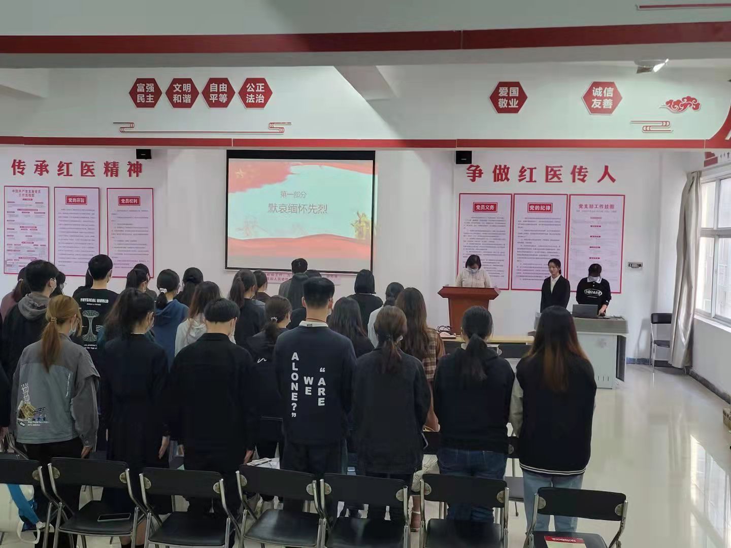 黄金凤带领全体人员念默哀词并集体默哀三分钟,表达对革命先烈深沉的敬意和对烈士英魂的无尽哀思。2020级预防医学专业本科1班钟莉莹分享了革命先烈的英勇事迹,带领同学们重温革命先辈艰难曲折的奋斗历程,体会先烈们的爱国情怀。2021级预防医学专业本科3班任晓宁饱含深情地分享了《赵一曼的示儿书》,同时分享在巾帼英雄赵一曼身上学习到的抗击日寇、誓死保家卫国的可贵精神。