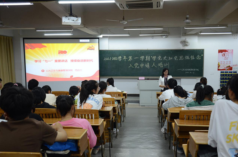 10月11日晚,公共卫生与健康管理学院党委书记范启兰为该院200余名入党申请人宣讲“七一”重要讲话精神。