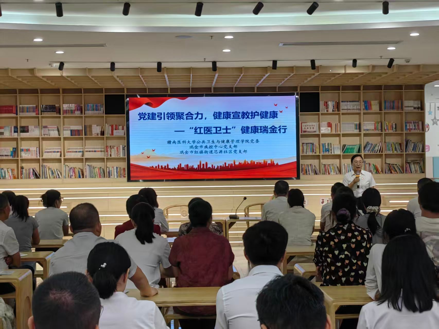 下午,公共卫生与健康管理学院党委组织各党支部与瑞金市疾控中心党支部在思源社区联合开展形式多样的“红医卫士”健康行志愿服务活动,师生党员们充分发挥专业特长,通过设立咨询台、发放宣传册、举办微讲座等形式,面向社区居民深入开展了重大传染病防治、慢性病管理、健康管理、“三减三健”以及“四高”营养防治等内容的健康宣教活动。志愿者们为居民量身高、测体重、量血压,耐心解答居民们的健康疑问,提供个性化的健康指导,现场气氛热烈,深受社区居民的欢迎和好评。