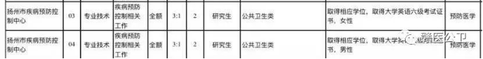 4.江苏省扬州市疾病预防控制中心2022年4月公开招聘工作人员公告