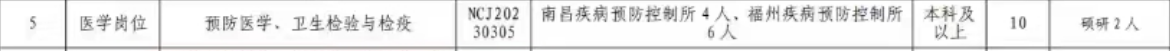 招聘人数:预防医学10