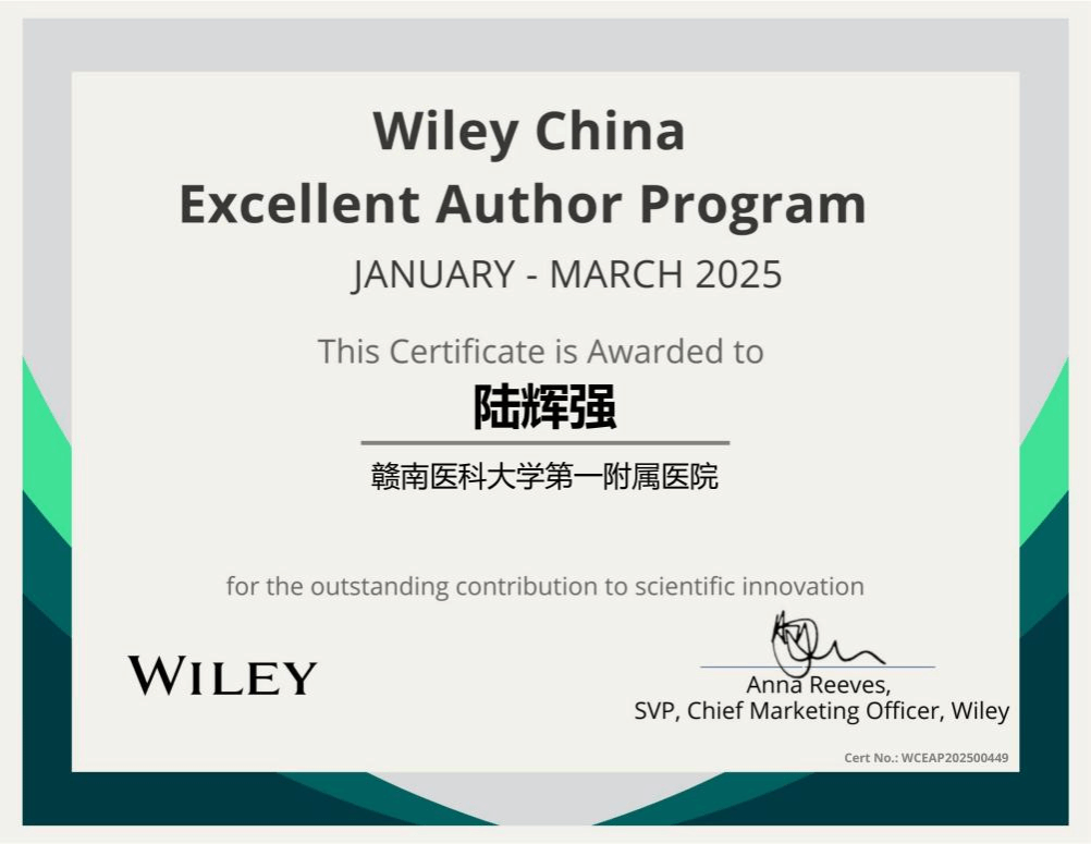 近日,赣南医科大学第一附属医院遗传发育与损伤修复研究中心陆辉强课题组发表在Wiley集团出版的期刊Environmental Toxicology中的研究论文“Eeffects of D-Tetramethrin on Zebrafish Development and Immune System ”(2025年第40期)受到全球学者们的广泛关注。此论文在该期刊中国作者2025年第一季度发表文章三月内下载量中名列前茅,陆辉强教授被授予“Wiley威立中国高贡献作者奖”。