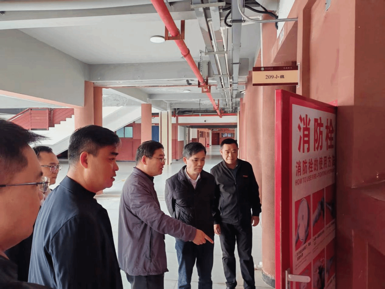 会后,刘志平一行实地检查了龙南校区安全设施、教学楼和食堂等场所。