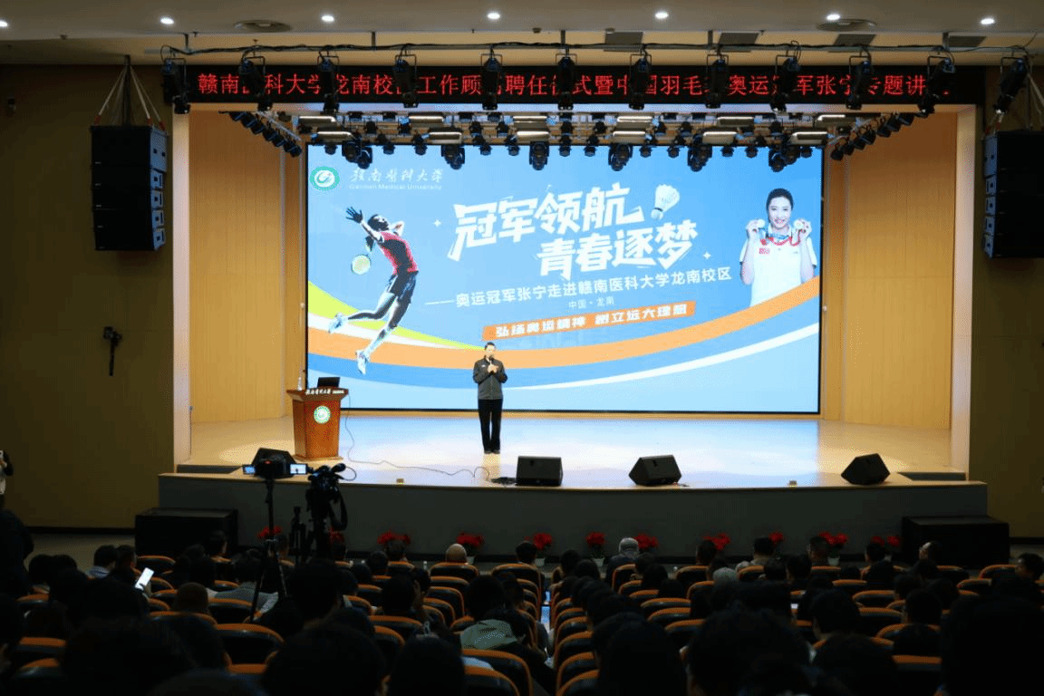 3月31日,中国羽毛球女子单打奥运冠军张宁走进赣南医科大学龙南校区,以“冠军领航 青春逐梦”为主题,与师生展开深入交流,用精湛的技艺展示与真挚的奋斗故事为赣医大学子带来了一场别开生面的精神盛宴。