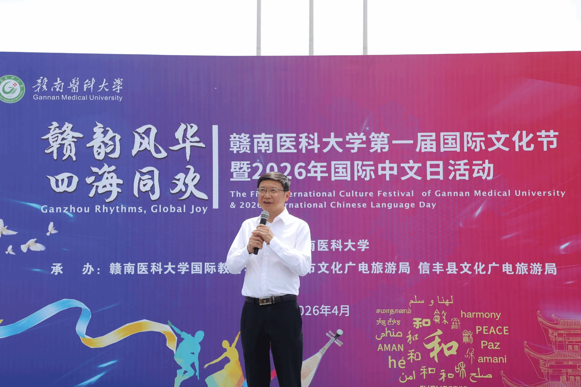 4月25日上午,“赣韵风华·四海同欢”——我校第一届国际文化节暨2026年国际中文日活动在蓉江校区成功举办。