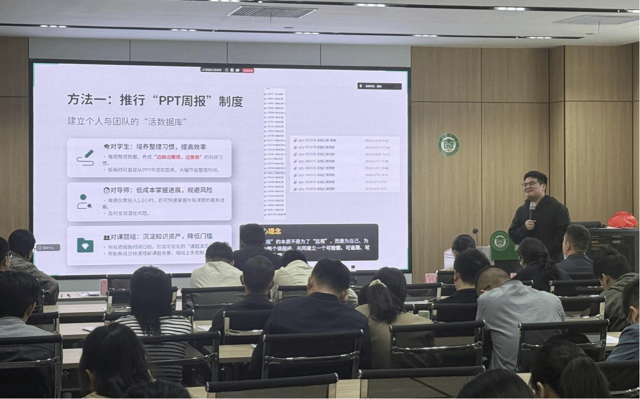 王强博士分享了科研选题、数据处理、SCI写作、交流合作及团队建设等方面的经验,重点讲解了“反常规”选题三步法、“PPT周报”数据管理制度,结合自身发表成果,为青年博士科研成长提供了可借鉴的实践路径。
