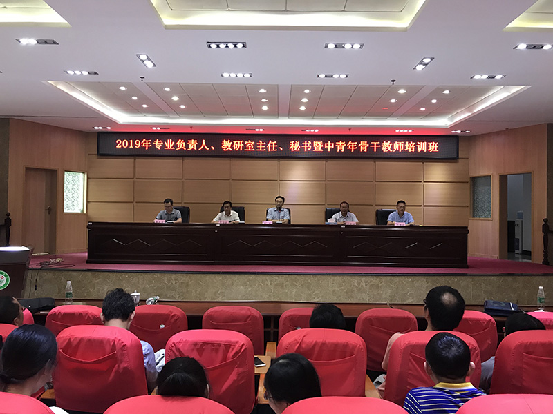 7月15-17日, 2019年专业负责人、教研室主任、秘书暨中青年骨干教师培训班在黄金校区图书馆学术报告厅举行。学校党委副书记、校长刘潜,党委委员、副校长叶军明出席开班和结业仪式并分别做专题报告。教务处全体人员、各学院分管教学工作负责人等120余人参加培训。