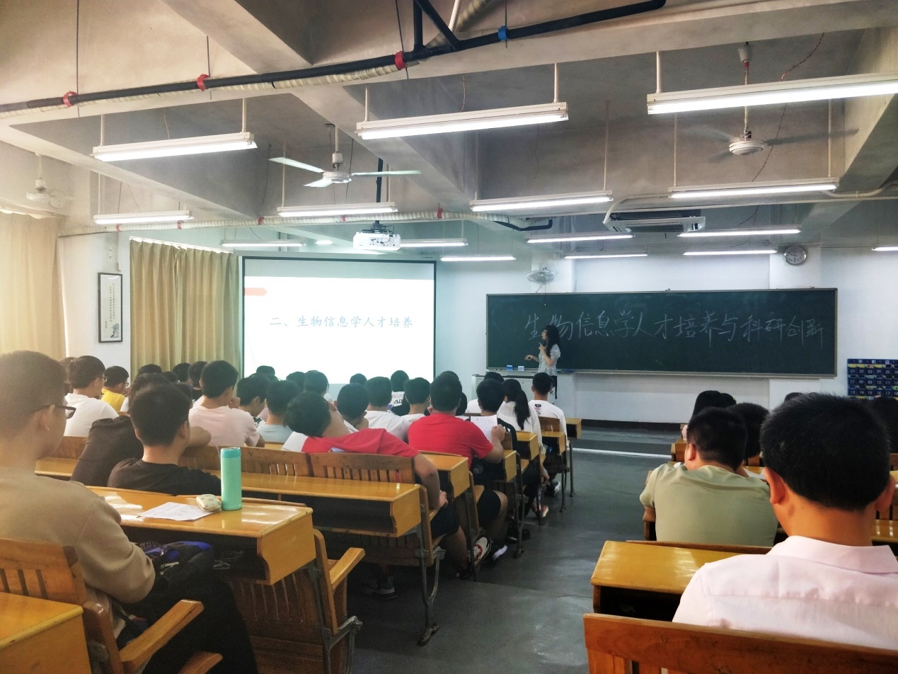 陈丽娜从医疗健康大数据的发展态势,生物信息学人才培养和科研创新实践等三个方面作了详细报告。现场还与师生们分享了哈尔滨医科大学生物信息科学与技术学院建立之初的学生培养、场地建设等,为我校第一批生物信息专业学生的学习注入了新的动力。