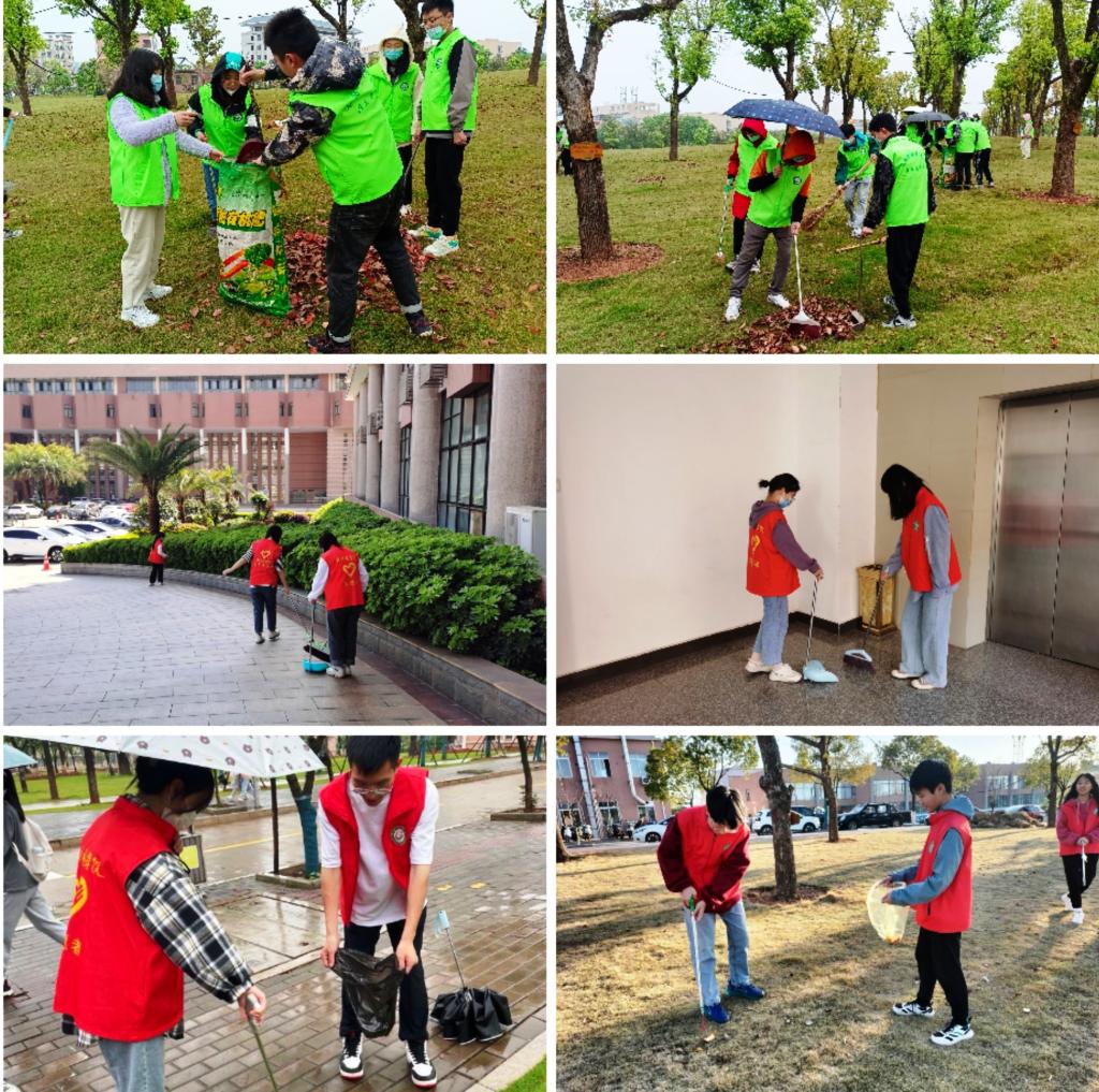 在校园护绿行动中,不管是在炎炎烈日下,还是在细雨绵绵中,志愿者都准时带着清扫工具,全身心投入到校园草坪清扫,细心清理枯枝落叶、塑料等垃圾。