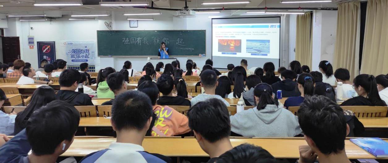 本次校内巡讲主题为“核能及碳排放、碳中和”,宣讲团团长马昊铭从生活中电力的来源展开介绍火力发电的未来发展和前景,并引出如今严重的环境问题——全球气候变暖,通过介绍控碳措施“碳达峰碳中和”,进一步向同学们介绍人类终极能源的解决措施——使用核能。宣讲员结合科普视频、电影素材,向同学们科普核能知识、核聚变理念、发电回路机制、生活中的辐射以及核技术在医学、工业、食品消毒、公共安全各领域的应用等相关知识,让大家进一步了解核能的各类应用场景,深刻领悟核工业精神。