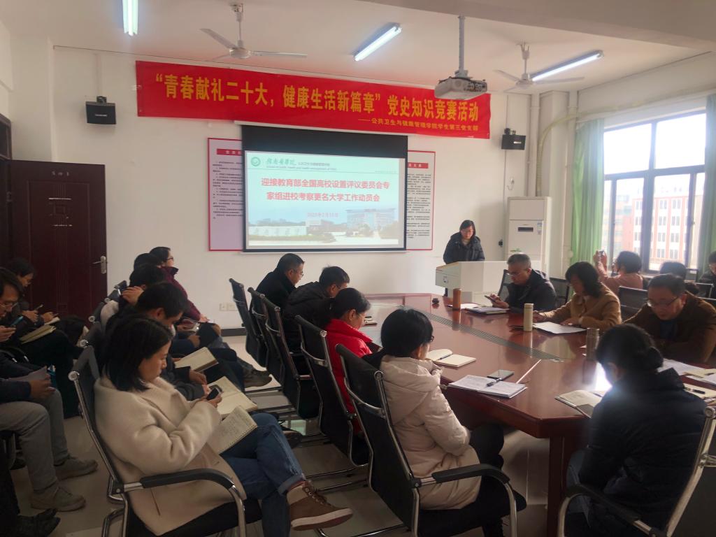 2月15日上午,公共卫生与健康管理学院召开更名大学工作推进会暨学习研讨会,该院领导班子、全体教职工参加会议。