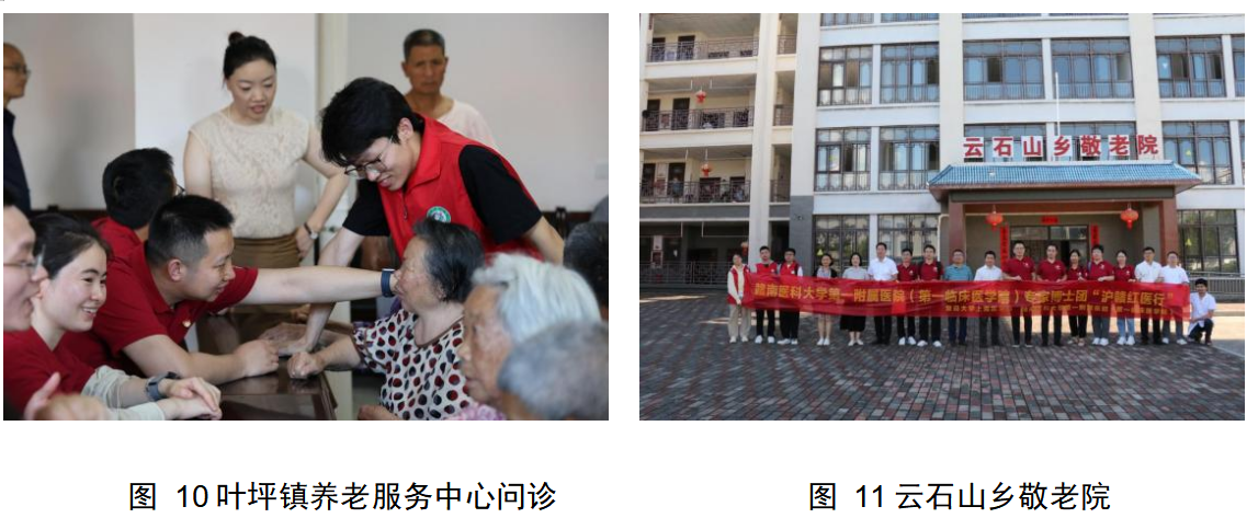 社会实践服务团先后前往瑞金市叶坪镇养老服务中心和云石山乡敬老院,为敬老院的老人们带去了温暖和关怀。活动中,队员们与老人们进行了深入交流,细致询问他们的身体状况,并为他们提供医疗咨询和用药建议,普及健康知识,帮助老人们更好地管理自己的健康。