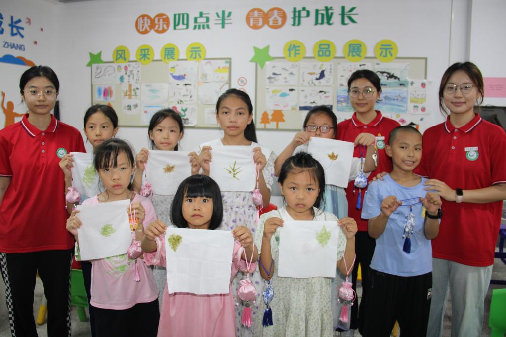 悠悠中药香,宣讲传四方。“炎炎夏日,大家户外干活时会喝藿香正气水吗?”“轻微上火时有喝过金银花茶水吗?”......依托学院特色和专业特长,实践队员深入上堡乡竹溪村、均源村、赤水村等地开展中医药文化科普宣传活动。通过开设小“药”课堂,用通俗易懂的语言向居民群众讲解中医药基本知识,常见中药材以及望、闻、问、切四诊。通过手工体验制作香囊和植物拓染、拼贴中草药贴画等形式,让居民群众切身体会中医药文化的魅力。