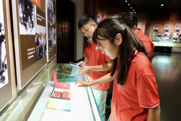 为表达对革命先烈的崇高敬意与深切怀念,实践服务团成员在将军馆内轻声吟唱红歌,歌颂祖国、赞美人民、讴歌英雄,传承红色基因中的革命精神和爱国情怀。
