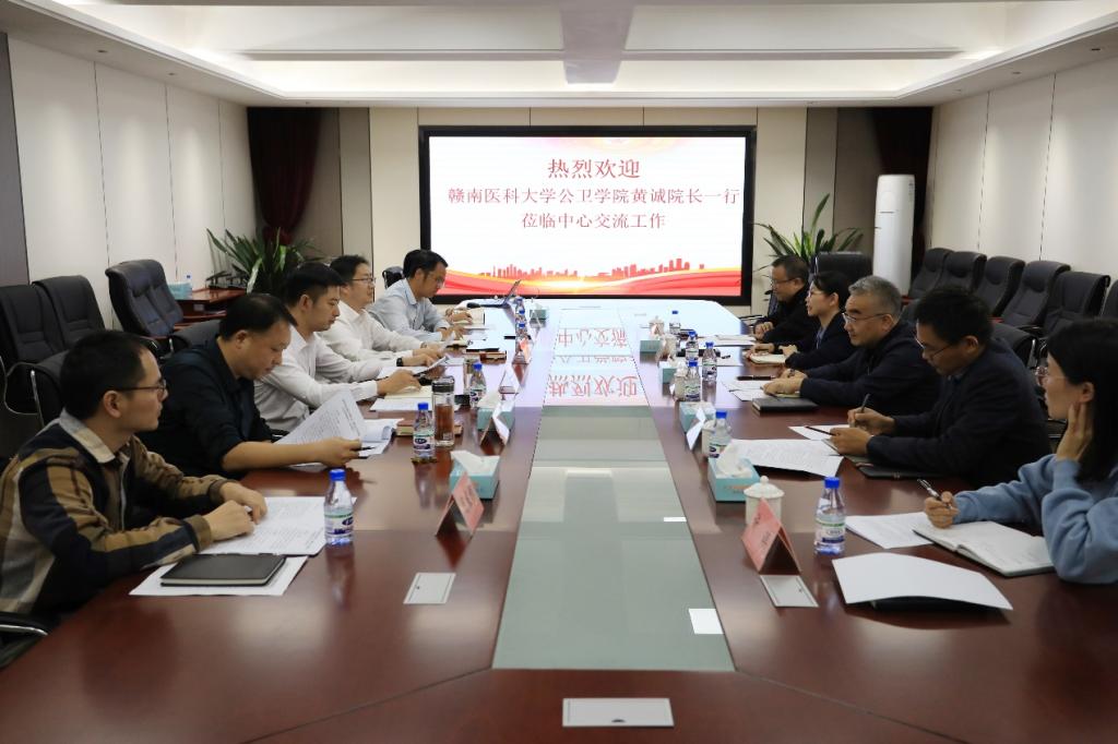 为加强医教研融合,强化实践教学基地建设,11月8日,公共卫生与健康管理学院院长黄诚、副院长罗江洪一行5人前往赣州市疾病预防控制中心进行协商洽谈,双方就共同成立“赣南医科大学附属赣州公共卫生中心”进行深入交流。赣州市疾病预防控制中心主任王小毛、副主任廖勇及相关项目实施科室负责人参加座谈会。