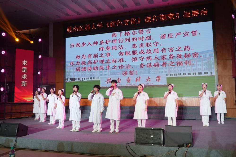 本次展演以“红色家书忆党史岁月,青春热血传红医精神”为主题,通过朗诵、情景展示、合唱等多样化艺术形式创新推动思政教育与艺术实践的深度融合。14封红色家书依次呈现:《觉醒年代》以铿锵有力的朗诵再现革命先驱的奋斗历程;《夏明翰》《赵一曼》通过情景再现生动演绎革命烈士的感人事迹;《可爱的中国》《中华颂》以恢弘气势抒发爱国情怀;《黄继光与母亲》《一封家书映初心》创新融合书信朗诵与理论阐释,展现红色精神的时代价值。