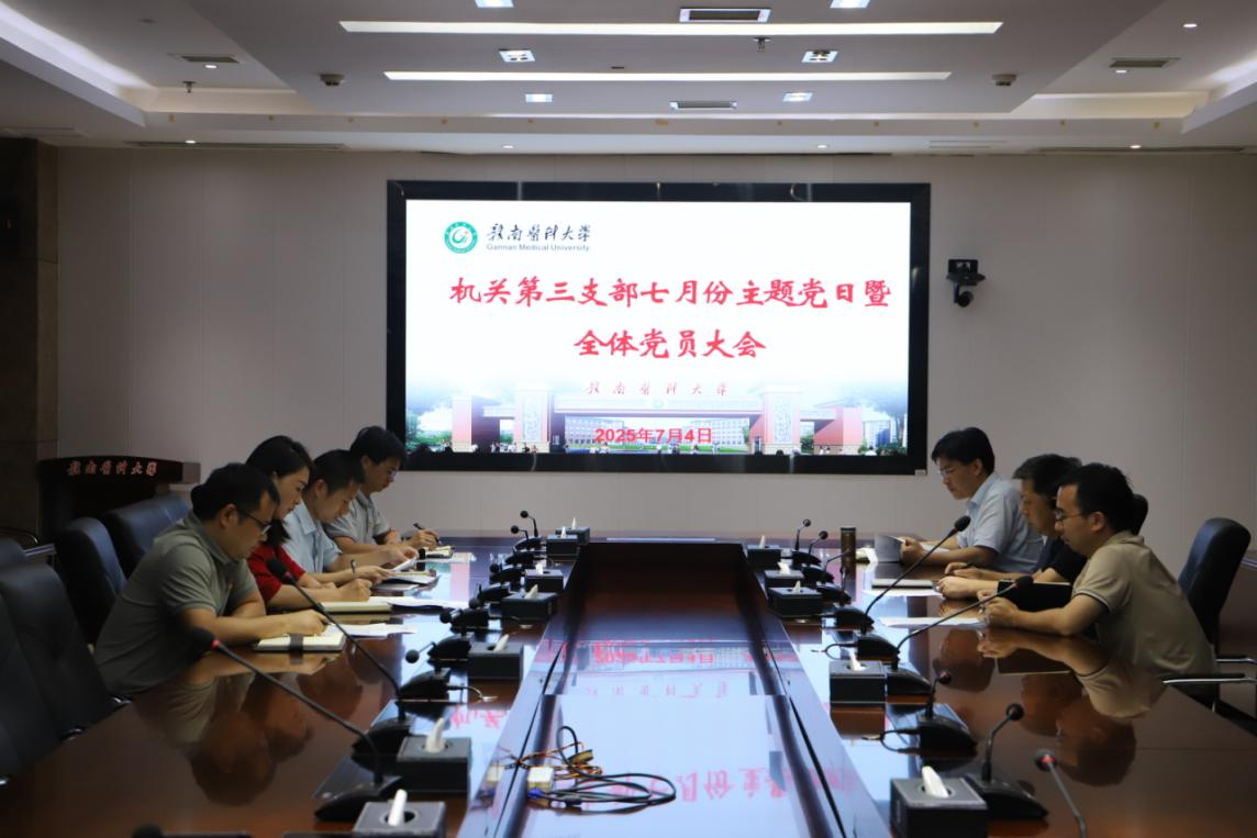 7月4日,机关第三党支部召开七月主题党日暨全体党员大会,会议紧扣打牢思想基础的核心要求,强化党员政治自觉与理论自觉,为高质量开展主题党日筑牢思想前提。学校党委常委、宣传部部长廖志平参加并作点评。