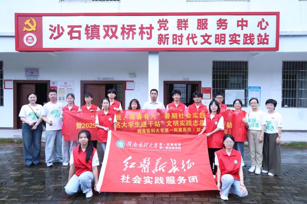 为深入贯彻落实“牢记嘱托强国有我 行走赣鄱感恩奋进—文化赣鄱行”2025年江西省高校学子暑假大思政实践活动,积极推进“万名大学生进千站”、红色走读、铸牢中华民族共同体意识,近日,赣南医科大学第一附属医院(第一临床医学院)“红医新长征”社会实践服务团走进章贡区沙石镇双桥村新时代文明实践站,开展“医心护乡 健康同行”主题志愿服务。