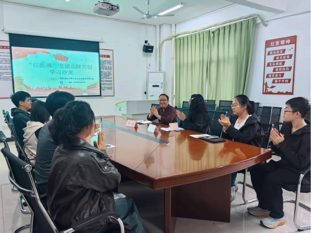 10月31日,公共卫生与健康管理学院本科生第二、三党支部联合举办“红医魂”党建品牌共创学习沙龙。公共卫生与健康管理学院党委书记邱伟和本科生第二、三党支部全体学生党员参与学习交流,会议由本科生第二党支部书记胡丹主持。