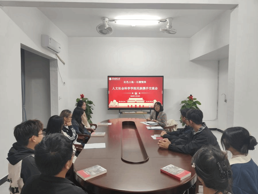 11月10日晚,人文社会科学学院在龙南校区举办“红色土地 石榴情深”民族携手交流会。学院党委副书记毛磊焱、辅导员、2025级全体少数民族学生及汉族学生代表共同参加了本次活动。