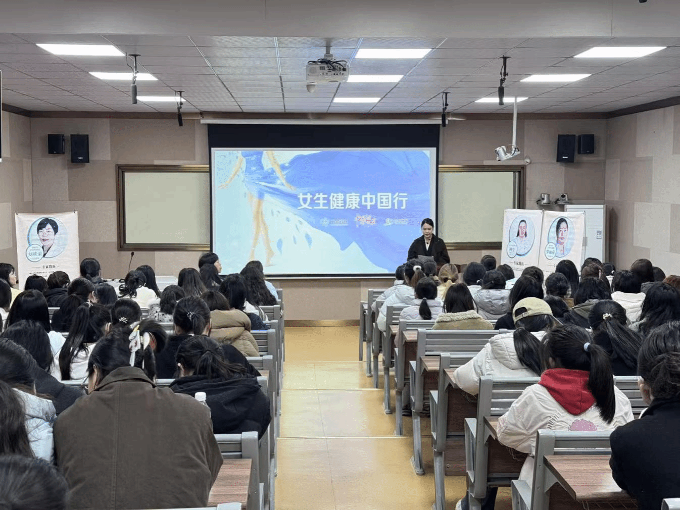 讲座现场,专家们围绕大学生恋爱心理、用药安全与心理健康等主题进行分享,旨在引导女生树立科学健康观念,提升自我保健意识。三位专家的讲解内容详实、贴近实际,既有理论深度,又具实践指导意义,现场互动热烈。