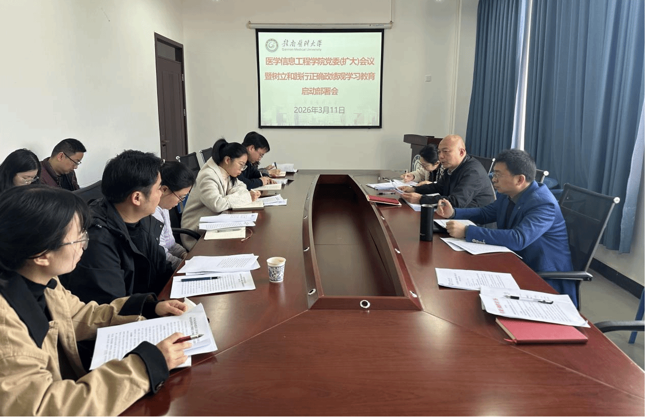 3月11日,医学信息工程学院在蓉江校区召开党委(扩大)会议暨树立和践行正确政绩观学习教育启动部署会。该院党委书记唐明主持会议,学院党政领导干部、党支部书记、科级干部和科室负责人参加会议。