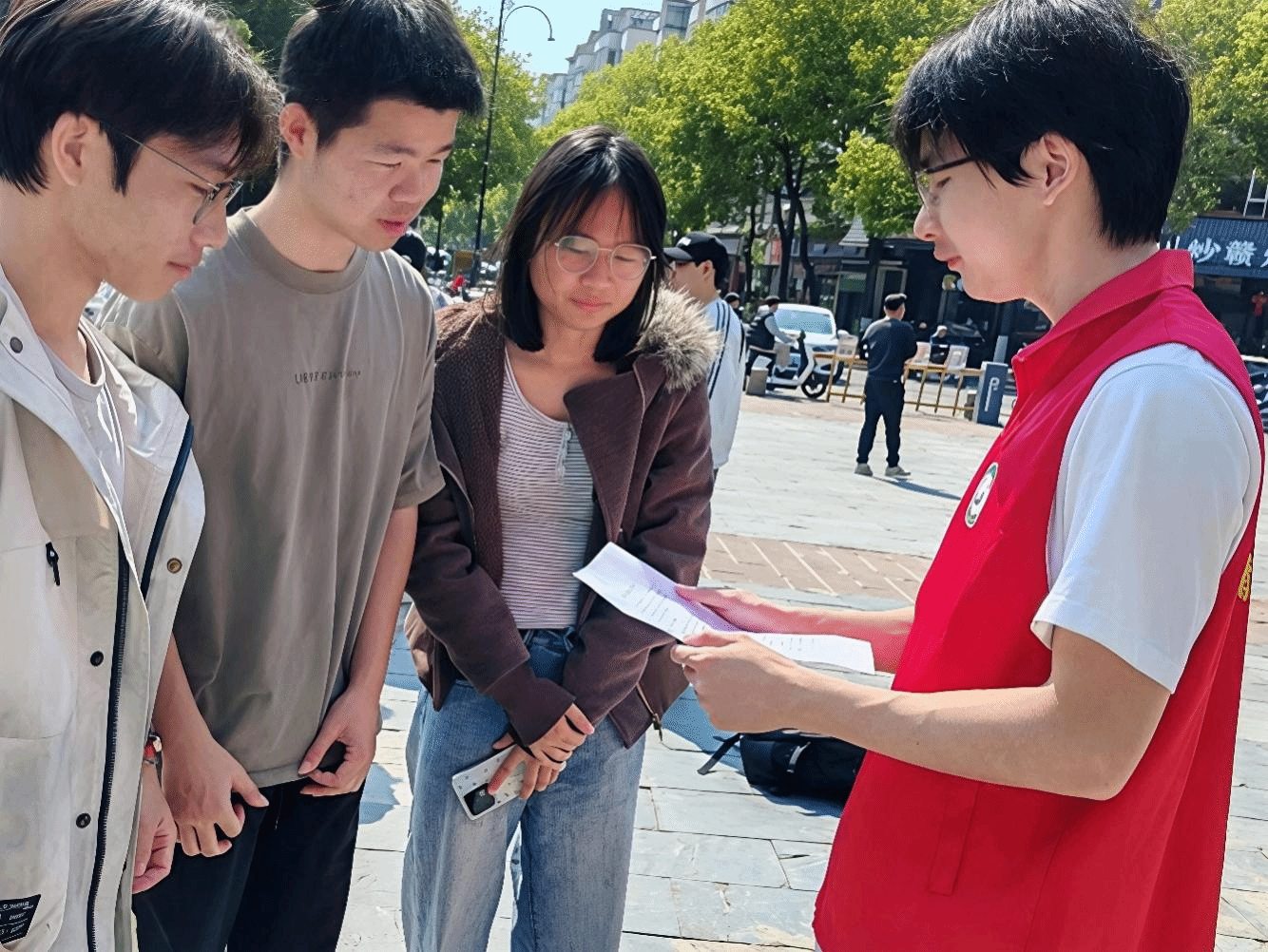 活动现场,志愿者们身着红马甲,手持扫帚、夹子等工具,清理古城墙步道及砖石缝隙中的烟头、纸屑等杂物。清扫间隙,志愿者向过往市民发放宣传单,讲述雷锋事迹,并结合医学生身份,分享对奉献精神的理解。