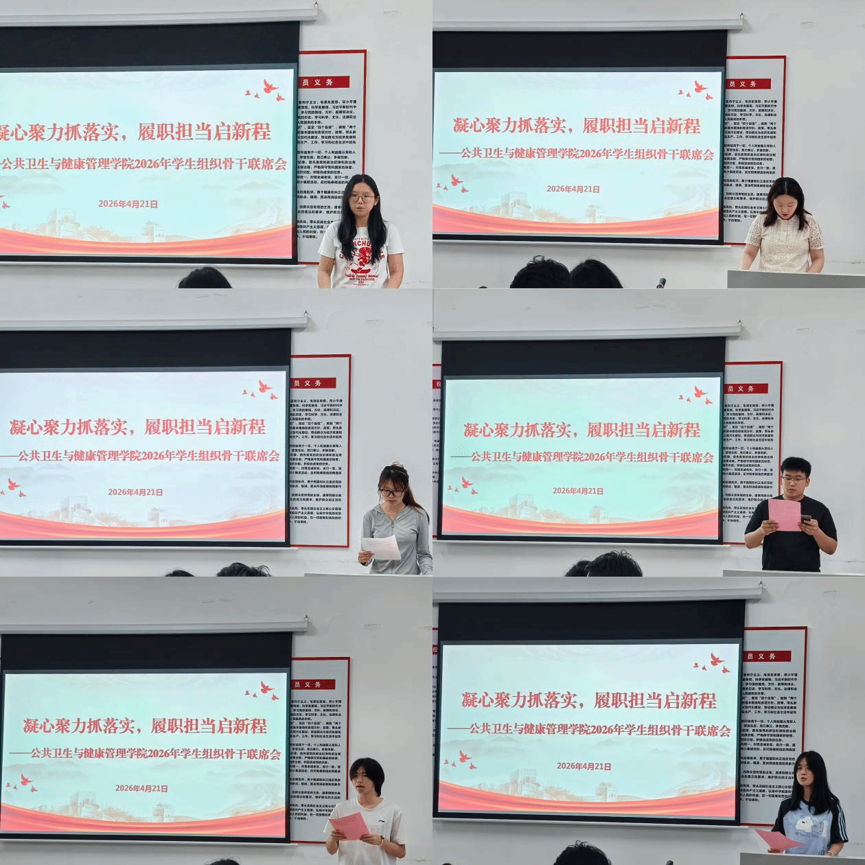 为进一步加强学院学生组织建设,统筹推进蓉江与龙南两校区学生工作协同开展,4月21日,公共卫生与健康管理学院召开2026年学生组织骨干联席会。本次会议采用线上与线下相结合的形式,该院党委副书记曾发挥、团委书记胡丹、学生工作办公室副主任邢宇及全体学生组织骨干参加。