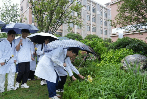 活动最后,全体师生肃立默哀一分钟,在细雨中依次向慰灵碑敬献鲜花,以庄重肃穆的仪式,表达对实验动物的崇高敬意与深切感恩。
