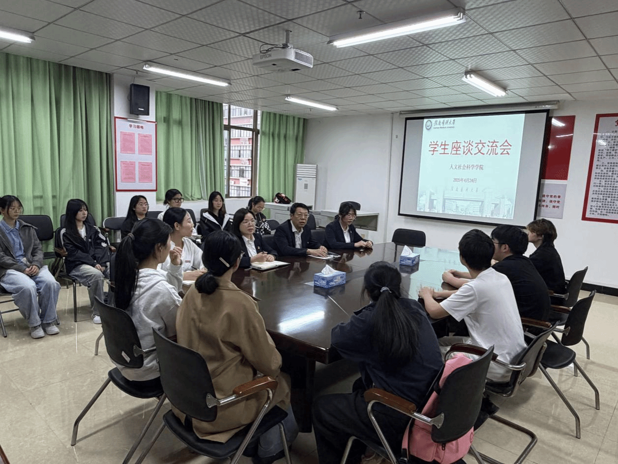 为深入开展树立和践行正确政绩观学习教育,坚持开门搞教育、虚心听民意,4月24日,人文社会科学学院在蓉江校区召开学生座谈会,广泛听取学生学习生活现状与成长发展诉求。学院党委书记王立、党委副书记毛磊焱出席会议,各年级学生代表共同参与,围绕学业发展、校园生活、就业规划、学院建设等多个核心维度展开深度交流。