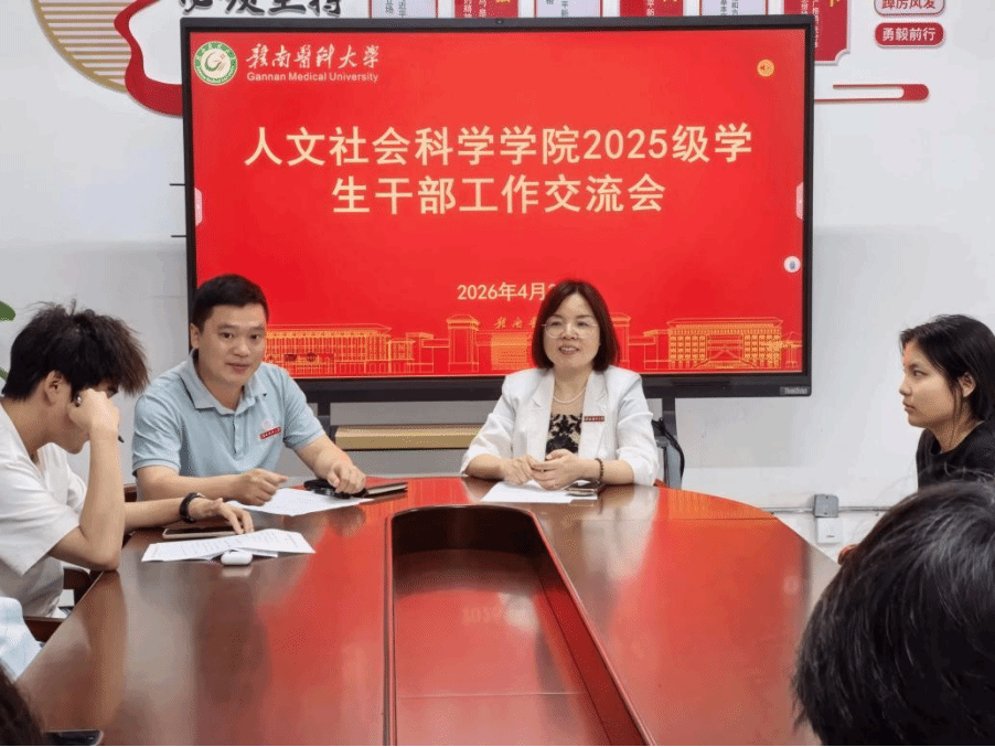 4月28日,人文社会科学学院党委副书记毛磊焱组织召开学生干部工作交流会。学院辅导员郭伟卫及2025级学生骨干参加。