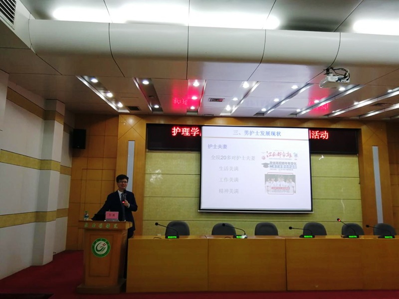 首先,南昌大学二附院“男丁格尔之家”组长方亮进行演讲,他以“护理的发展现状与职业规划”为题,介绍了护理、专科护士及男护士的发展现状。讲述了自己从江西省首批“本科男护士”到江西省首位“男护士长”,从对护理专业的否定迷茫到坚定热爱的成长道路。