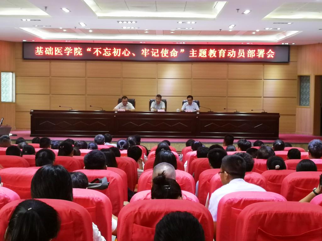 根据学校党委主题教育的统一部署和安排,基础医学院于9月17日下午在图书馆报告厅召开“不忘初心、牢记使命”主题教育动员部署会。学校主题教育督导组刘贤明、纪委赖华香同志出席部署会学院领导班子、学院全体教职工、学生党员、入党积极分子代表参加会议,会议由该院院长谢水祥主持。