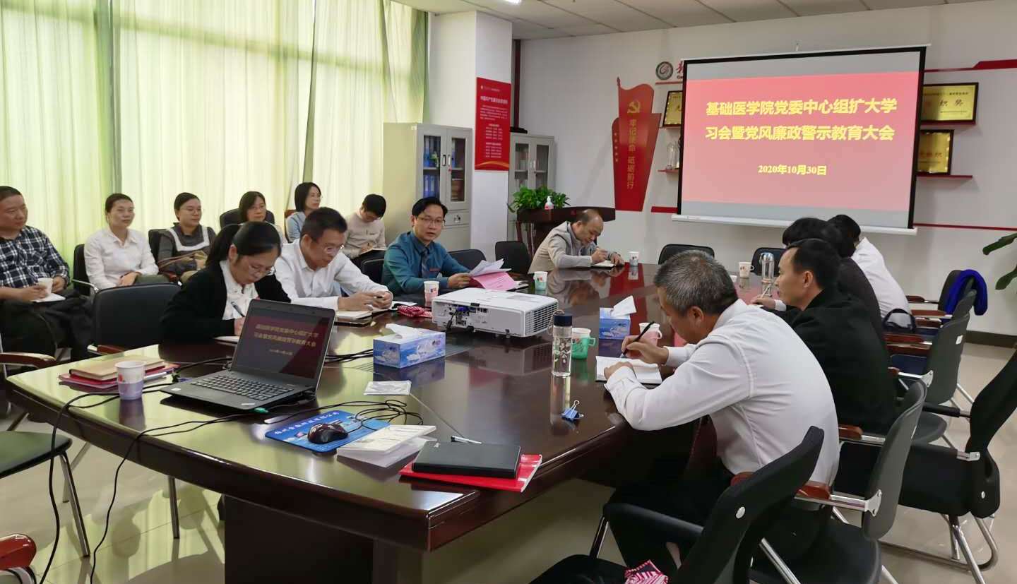 10月30日下午,基础医学院在黄金校区举行党委中心组扩大会暨党风廉政警示教育大会学院全体党委领导班子、各科室正副主任、支部书记参加了此次会议。