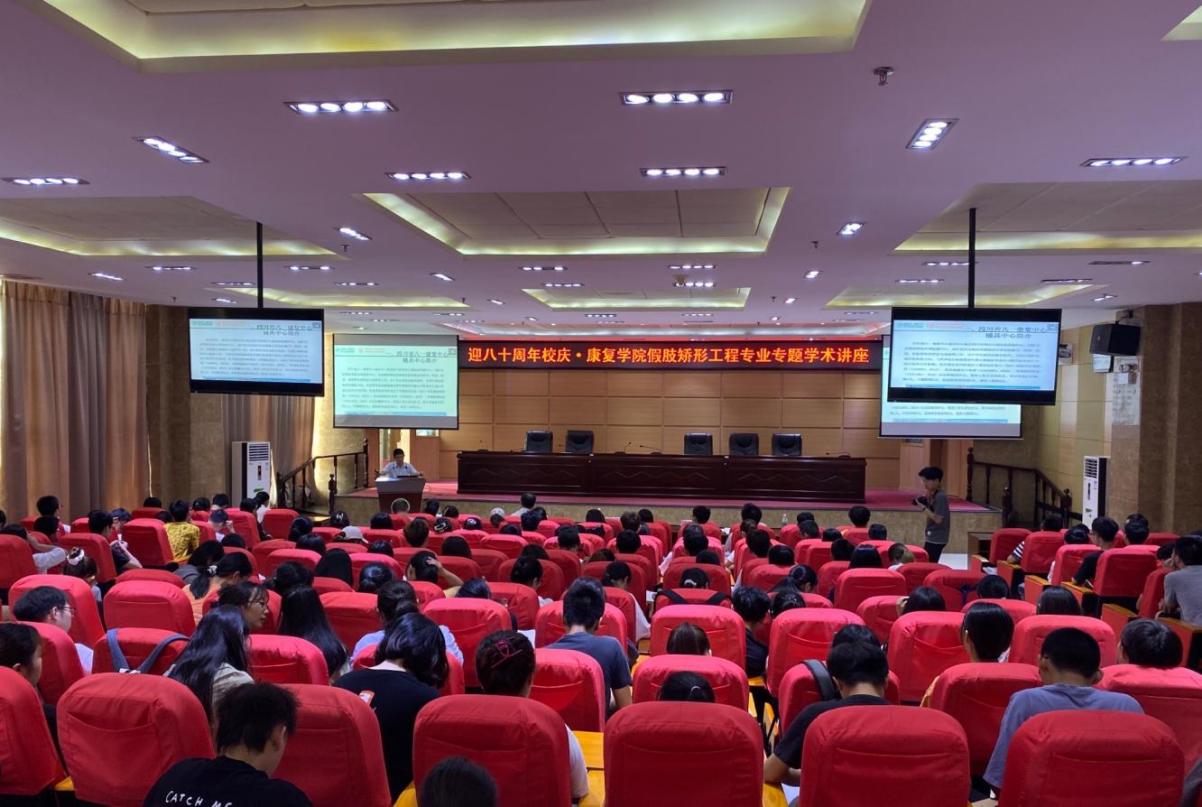 刘夕东一行在黄金校区图书馆报告厅作“迎80周年校庆”假肢矫形工程专业专题学术讲座,学院领导及该专业师生200余人到场聆听。