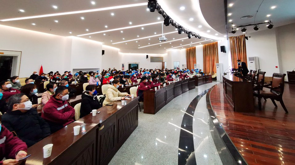 1月27日上午8:30,江西省委省政府在南昌滨江宾馆为江西省第一批援鄂医疗队138名医护人员举行了出征仪式。临出发前,正在部署全省防治新型肺炎工作的省委书记刘奇、省长易炼红同志仍在百忙之中抽空前来看望全体医疗队成员,并给大家壮行。两位省领导对大家嘘寒问暖,询问医疗队物资是否准备齐全,各位队员家中有无困难,最后勉励大家工作上要扎扎实实,做好个人防护,早日完成党和人民赋予的光荣使命,4600万赣鄱儿女等着你们平安凯旋,并与大家挥手告别。27日11时50分,全队搭乘江西省航空公司专机顺利抵达武汉天河机场。下午14:00左右到达当地医院提供集中住宿区后,简短休整后,医疗队组长及小组组长立即展开与对口支援单位-武汉第五人民医院的前期对接工作,在第一时间汇总统计医疗队所携带来的支援物资,以及各队员亟需的生活物资,并与对口单位及时沟通协调解决方案。同时深入交流医疗队与医院的目前状况。