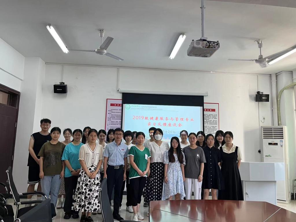 5月26日,公共卫生与健康管理学院在黄金校区举行了2019级健康服务与管理专业学生实习反馈交流会。健康服务与管理教研室全体老师及2019级健管班全体学生参加。