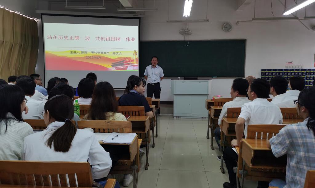 6月15日,学校党委委员、副校长陈亮为医学信息工程学院师生上了一堂主题为“站在历史正确一边 共创祖国统一伟业”的思政课,该院100余名师生代表到场聆听。
