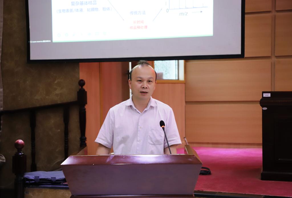 江西中医药大学副校长陈焕文作《离子化过程的时空分辨特性及其分析应用》报告,介绍了离子化时空分辨特性的基本原理与优点,以及研究成果转化在生命安全与公共安全等方面的典型应用与经验。