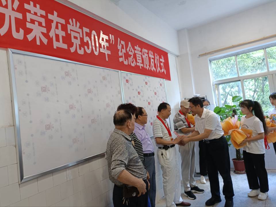 6月30日,学校在章贡校区举行“光荣在党50年”纪念章颁发仪式,学校党委副书记曾泽鑫,党委委员、组织部长甘雅芬出席。党委委员、统战部长、机关党委书记赖传景主持纪念章颁发仪式。老党员代表、青年代表、离退休党总支有关负责同志参加仪式。
