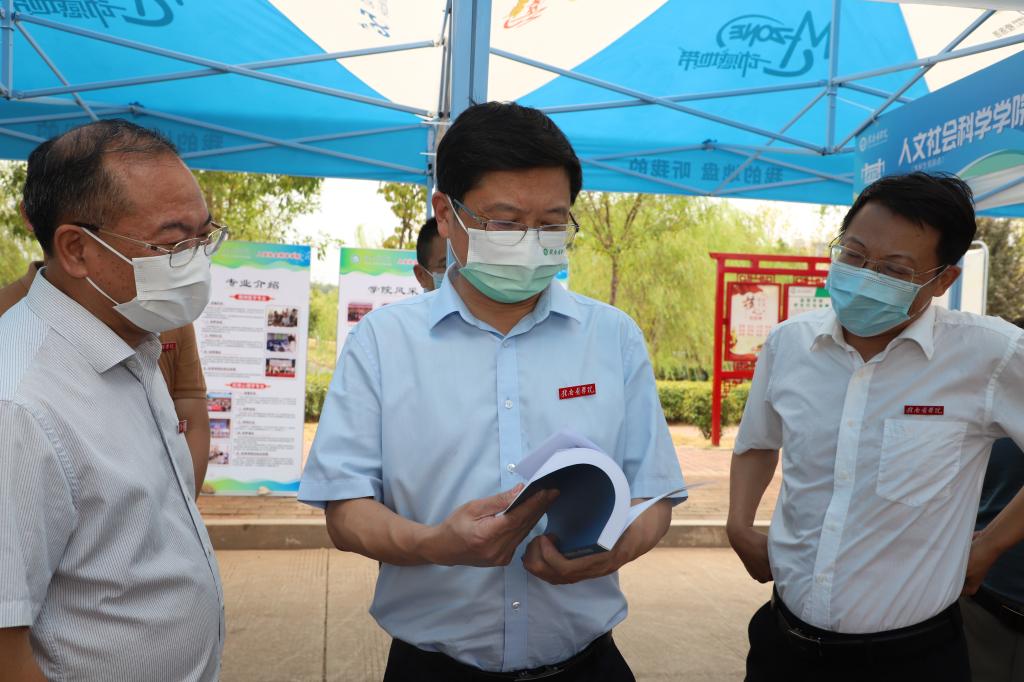 校领导一行到黄金校区西侧门的迎新工作现场,指导迎新工作,了解新生报到情况,详细询问新生入校信息核验、扫码测温、报到登记等工作,并通过“迎新报到数据实时播报平台”了解学生报到进展。张小康对一线工作人员和学生志愿者的辛勤付出表示感谢,他强调,务必始终绷紧疫情防控这根弦,严格落实疫情防控各项要求,不断完善工作规程,明确分工、加强协作、压实责任,严把“入口关”,紧盯重要点位、重点环节,切实守护好师生员工生命安全和身体健康,使新同学一来到学校,就能切身感受到我校高质量的管理水平和有温度的保障服务。