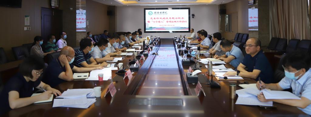 根据省委统一部署,9月18日下午,我校党委作风建设专题分析会暨“七个有之”专项治理工作会议召开,学校党委书记李恭进主持会议并作总结讲话,在家的学校党委领导班子成员张小康、陈亮、黄瑞忠、叶军明、肖树辉、彭维杰、廖志平、赖传景出席会议。