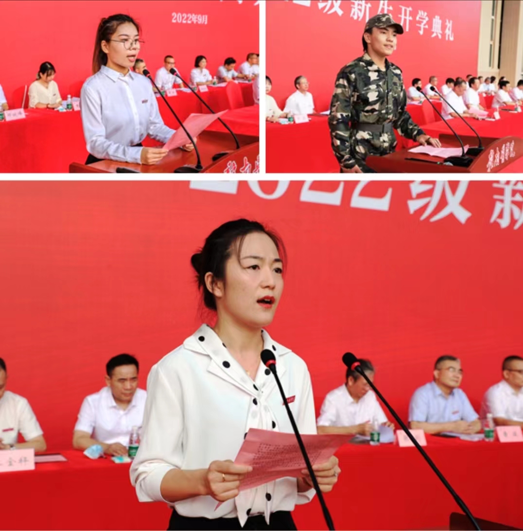 医学信息工程学院2022级医学影像技术专业本科(2)班徐宁同学作为本科新生代表、护理学院2022级研究生李秋霖同学作为研究生新生代表、药学院博士温丽娟作为教师代表先后发言,表达心声和祝福。