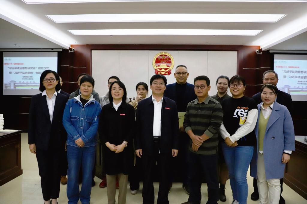 廖志平在致辞中指出,习近平法治思想是习近平新时代中国特色社会主义思想的重要组成部分,党的二十大报告首次单独把法治建设作为专章论述、专门部署,充分体现了以习近平同志为核心的党中央对全面依法治国的高度重视,成立“习近平法治思想研究会”,正是大好时机。廖志平希望研究会成立后,能结合马克思主义学院法学学科教学和实践任务,带头弘扬社会主义法治精神,带头传承中华优秀传统法律文化,带头开展法治宣传教育,带头开展理论研究和理论阐释,早见成效,早出硕果,真正使习近平法治思想深入人心,使遵法守法学法用法在全校全社会,在广大师生中蔚然成风。