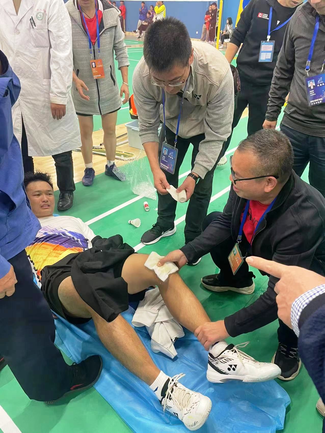 在省运会上,学校代表团副团长、康复学院院长温优良为一名受伤严重的运动员进行紧急医疗救治,受到了组委会的赞扬与认可。
