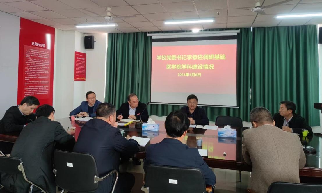 3月8日上午,学校党委书记李恭进深入基础医学院调研指导学科建设工作并召开座谈会。学校党委委员、副校长叶军明陪同调研。