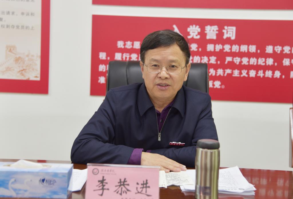 在听取汇报后,李恭进对马克思主义学院的学科建设工作提出要求。李恭进指出,马克思主义学院是学习、宣传、研究马克思主义的主阵地,承担着学校大学生思想政治理论课的教育教学任务,加快马克思主义学院的标准化建设,提升思想政治课质量和水平,一定要紧紧抓住学科建设这个龙头,在明确方向、打造平台、夯实基础、充实人才、凝炼特色等方面下功夫。